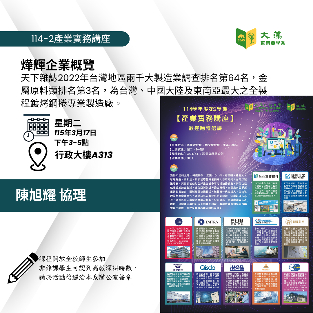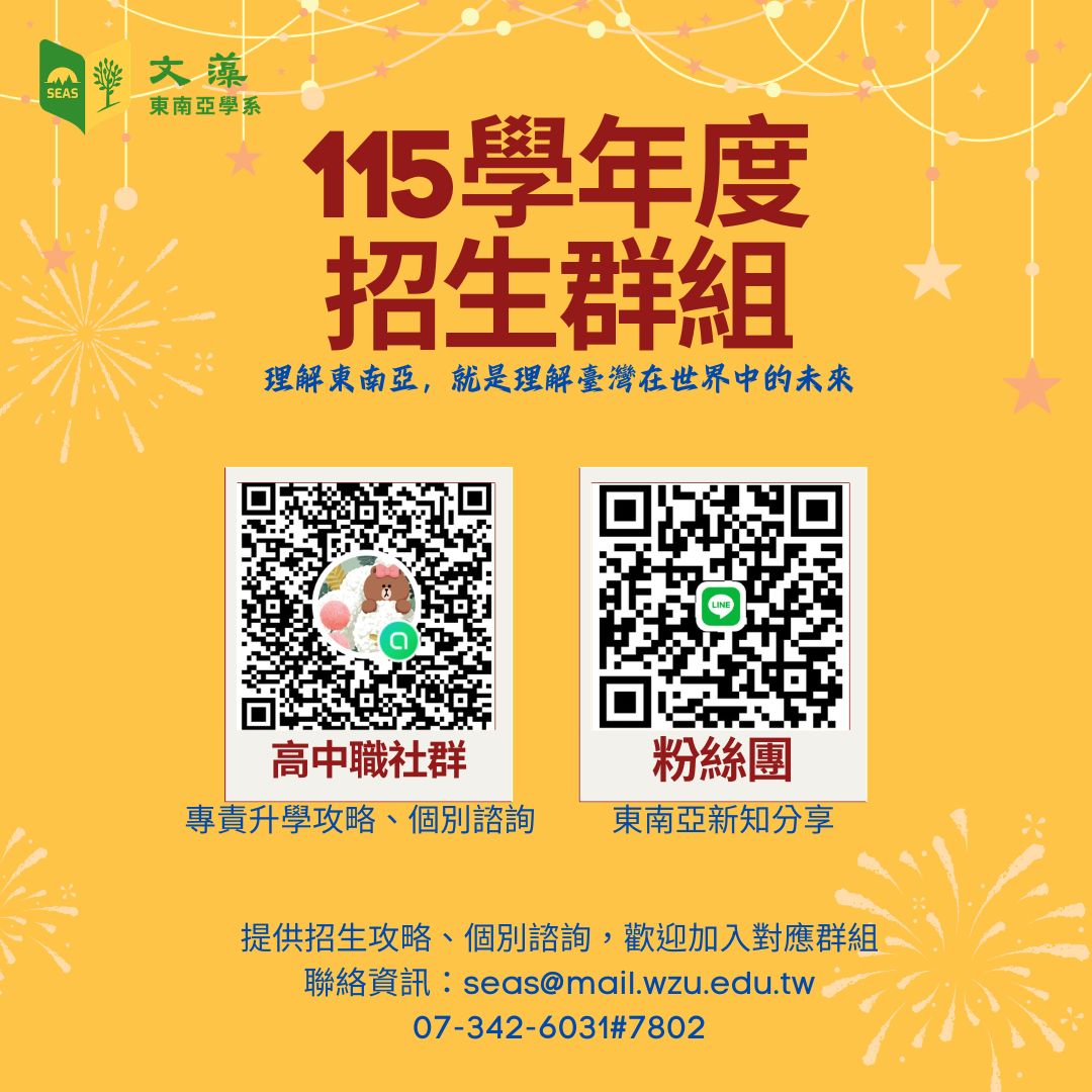 文藻外語大學東南亞學系於2025年10月17日至19日舉辦「2025文藻東南亞學術研討會」(Wenzao International Conference on Southeast Asian Studies, Wenzao ICSEAS),今年邁入第9年,已是台灣與國際東南亞研究的重要平台。本屆以「東南亞:治理、文化價值與地緣政治的動態(Southeast Asia: Dynamics of G