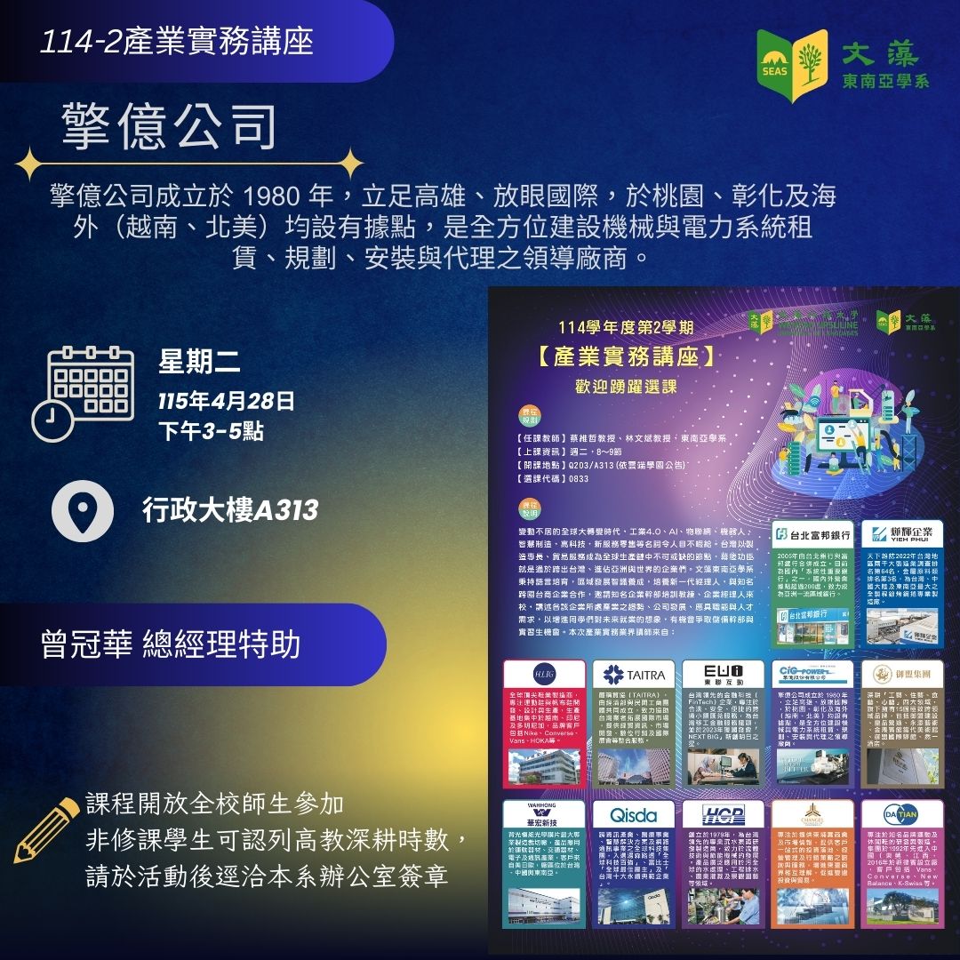 文藻外語大學東南亞學系於 4 月 15 日舉辦「咖啡館講座」泰國場,邀請本系學姊分享,為學弟妹揭開泰國三大名校——法政大學、清邁大學與詩納卡寧威洛大學的交換生活面紗。本次講座特別強化「當地生活」與「行政實務」,從簽證攻略到金流避雷,提供最貼近現場的實用資訊。