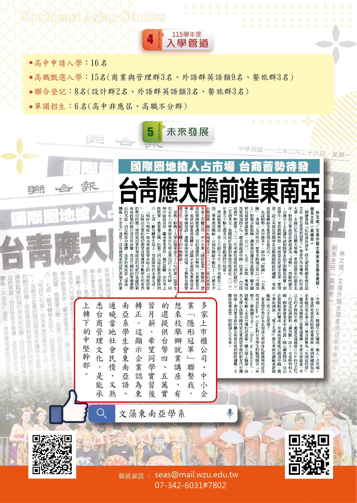 【東南亞學系】招生快訊&高中職攜手計畫