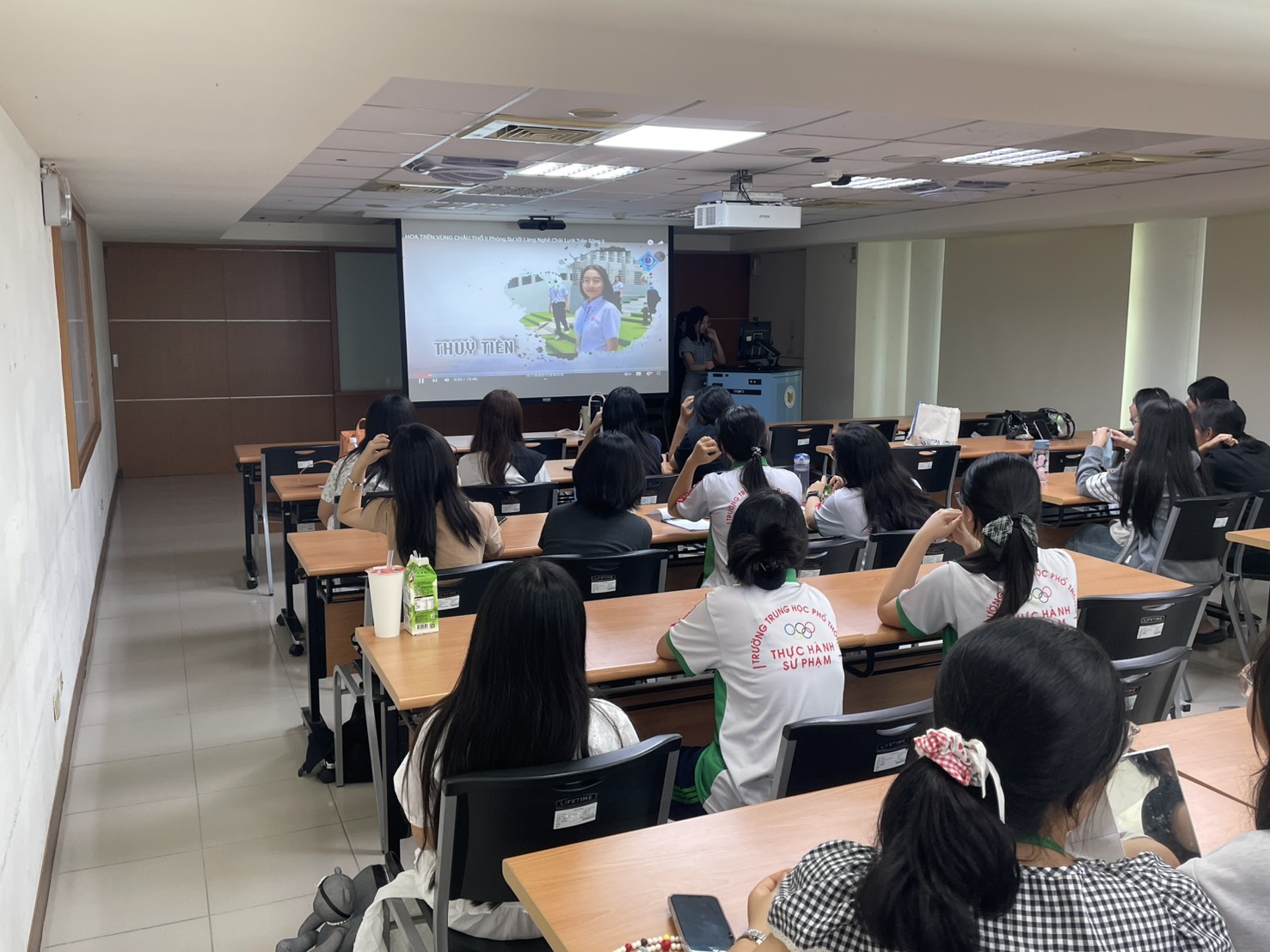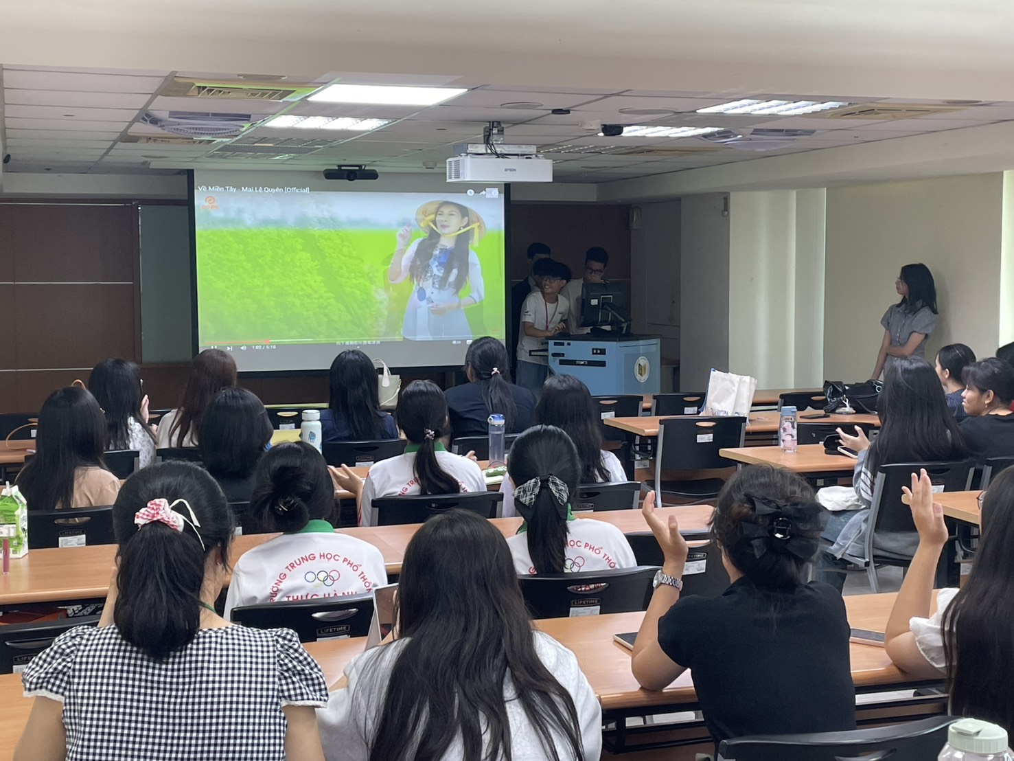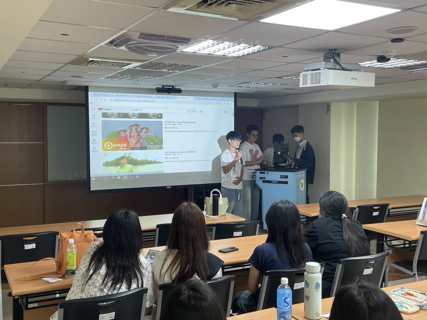 參訪交流中,越南學生以生動的影片介紹肯特地區風光與當地生活面貌,並分享他們在台期間的趣味經驗,展現對臺灣文化的濃厚興趣與觀察。