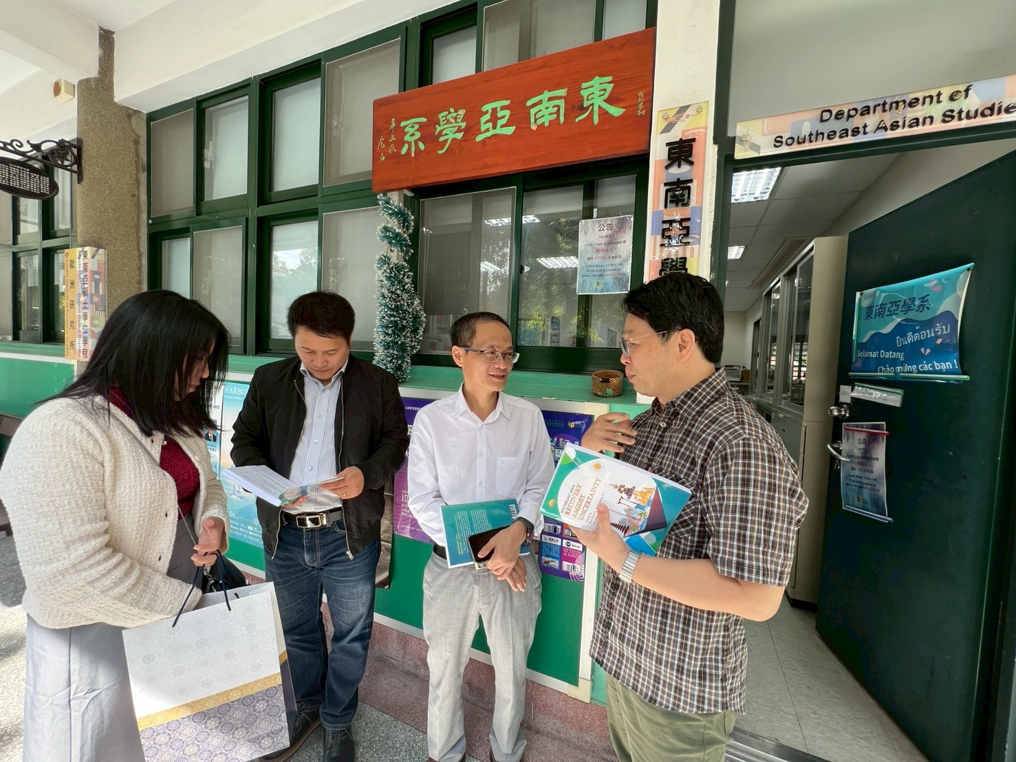 2025年10月29日(週三),越南河內人文與社會科學大學「語言學暨越南語與越南學研究系」系主任阮玉平、副主任裴維楊與何氏慧誠老師一行,拜訪文藻外語大學東南亞學系。本系代表林文斌主任、鄭垂莊老師與阮氏玉蘭老師出席會談,針對未來合作方向進行討論,包含語言檢定與雙聯學位等議題。此次訪談為河內人社大學系所合併後的新單位首次正式訪校,雙方期待持續深化臺越學術與教育交流。