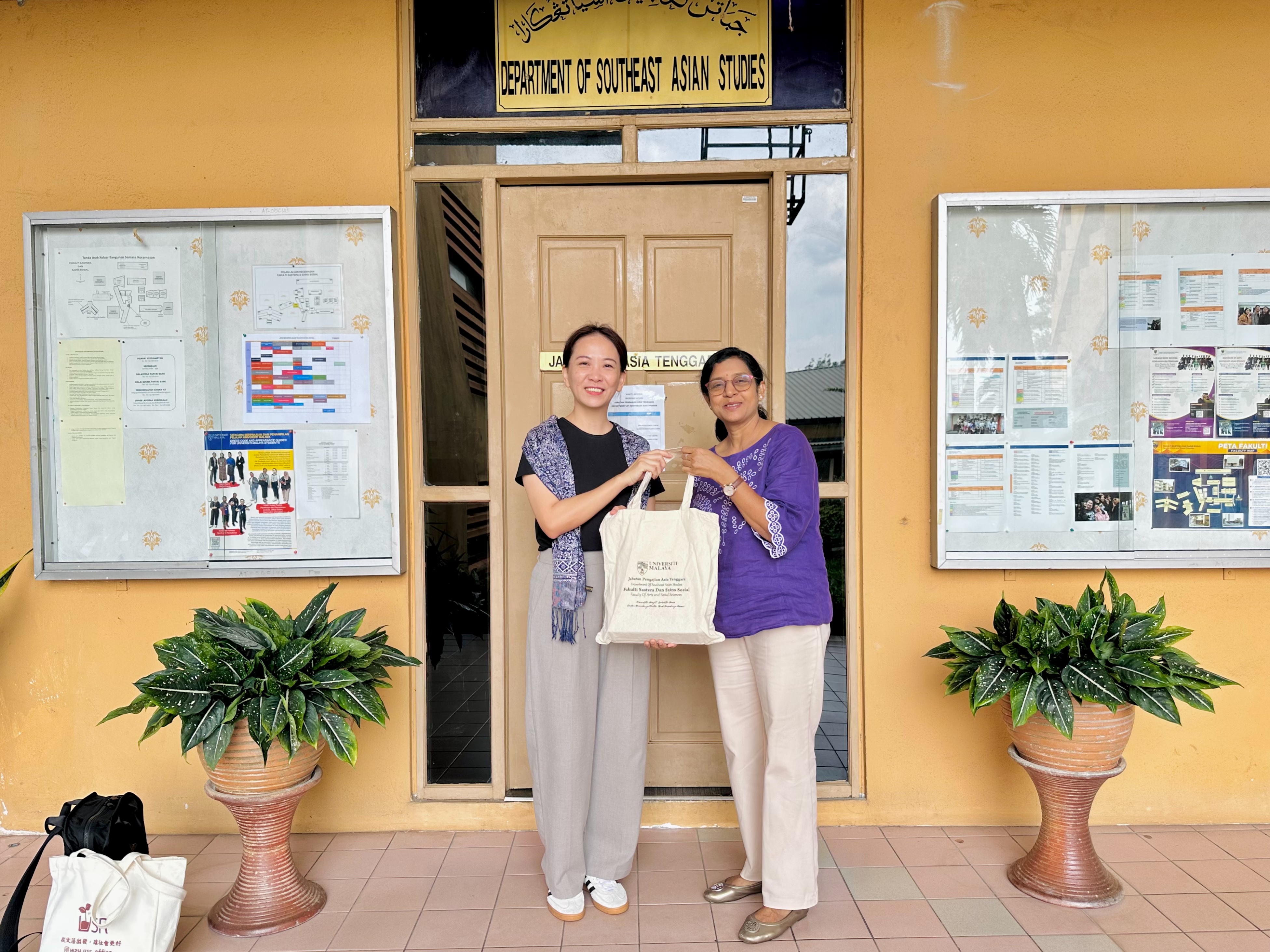 在馬來亞大學的拜訪行程中,本系師生由東南亞學系的Dr. Mala Rajo Sathian熱情接待。雙方於會談中交流系所發展方向、研究特色及未來合作可能,並互相致贈紀念禮物以表達友誼。會後,雙方前往校園附近的印度餐廳用餐,席間針對課程規劃與教學經驗進行深入討論,使交流更加緊密且具體。