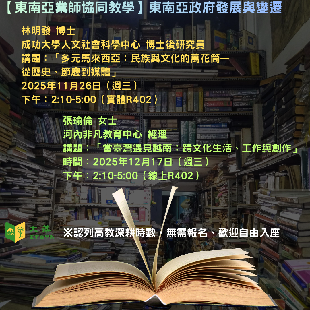 時間:2025年11月26日(週三)下午:2:10-5:00(實體R402)