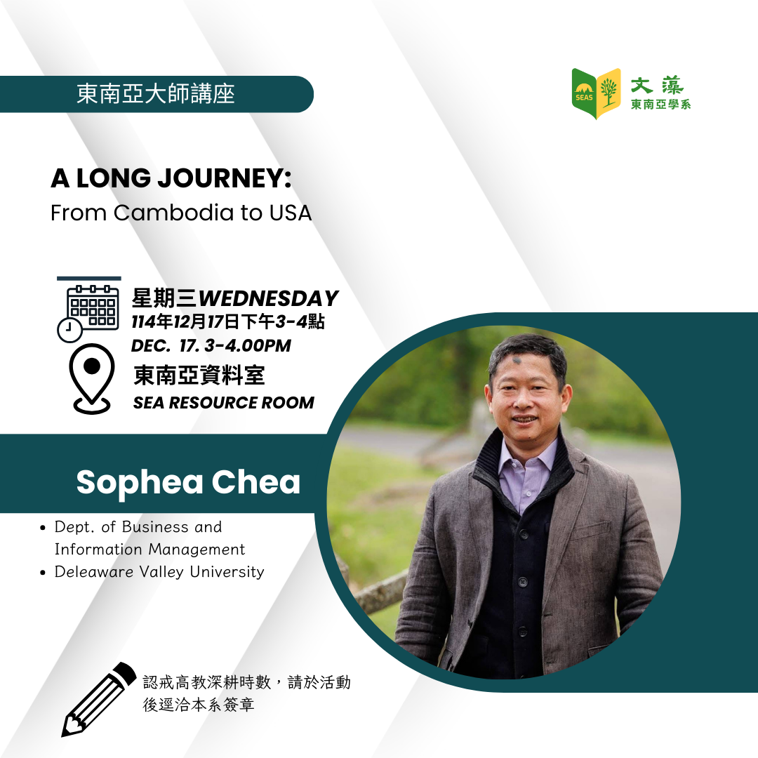 【東南亞教師社群講座】Sophea Chea 助理教授:A long Journey: From Cambodia to USA